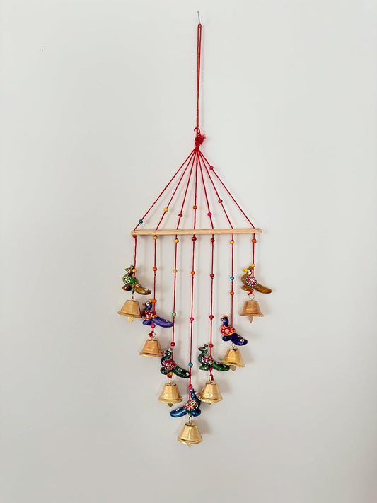 Decorative Bell Wind Chime, Handcrafted Metal Hanging Mobile with 7 Bells and Peacock, Blue, Yellow, Teal, Purple, Voilet and Gold, Indoor Outdoor