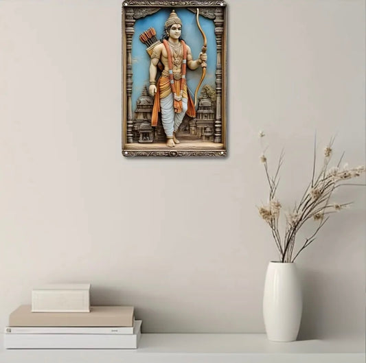 God Rama Aluminum Print| Vintage-Inspired Square Aluminum print| Hindu God Rama in Temple Theme