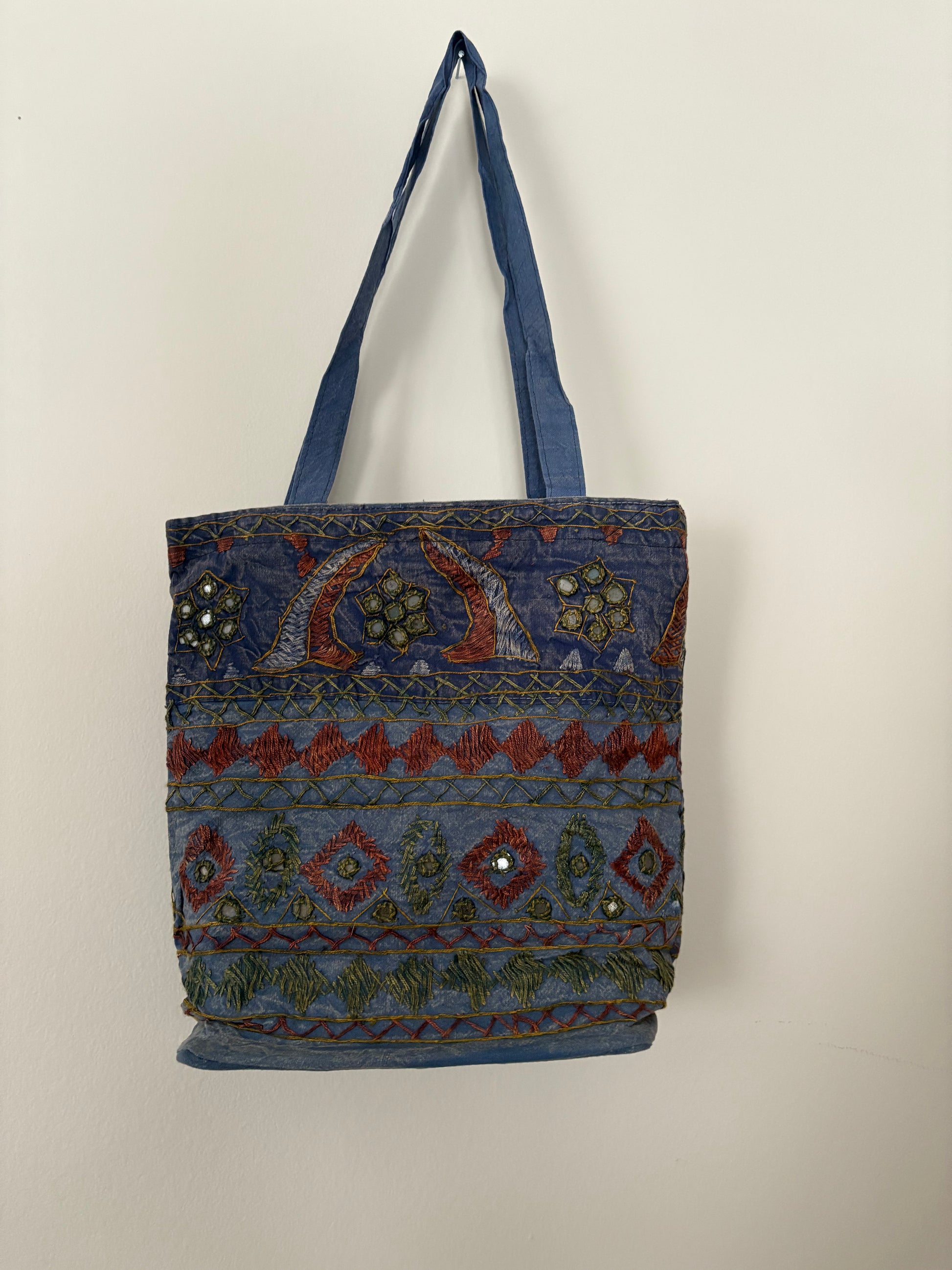 Handmade Ethnic Indian Tote Bag Embroidery Mirror Work Boho Hippie Style Cotton Hobo Hand Bag India Ins Style Fabric Beach Print.