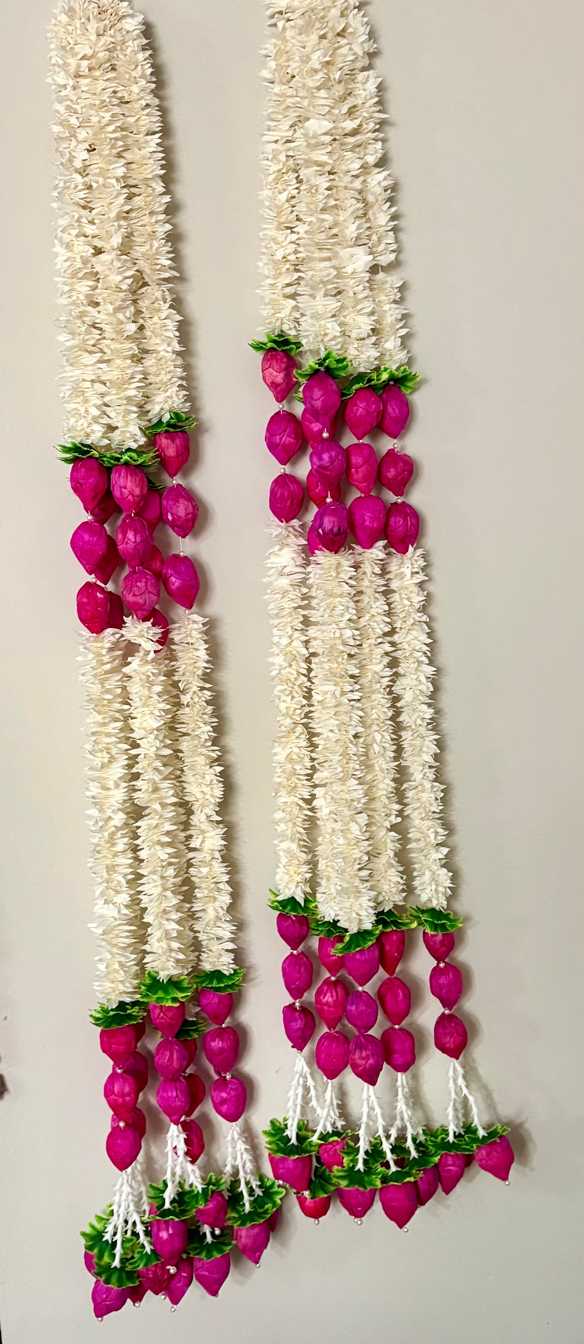 Brighten your entrance with our enchanting Jasmine Artificial String With Lotus Flower Center Decor . This stunning piece features a vibrant arrangement of Jasmin Lotus fabric flowers, symbolizing happiness and warmth. Perfect for adding a cheerful touch to your home, this decor is suitable for both festive occasions and everyday use. Crafted from high-quality, durable fabric, the flowers maintain their vibrant color and shape, ensuring a long-lasting decorative piece. The lightweight design makes it easy to hang, creating an inviting and friendly atmosphere for guests as they enter your home.